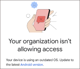 Users who try to access Google apps on a risky device get a message that explains the device risk and how to eliminate it: